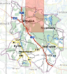 Um in einen anderen Kartenbereich zu wechseln, klicken Sie in der kleinen Karte die entsprechende Position an. zurück zur Hauptkarte zurück zur Startseite zum Ortsverzeichnis